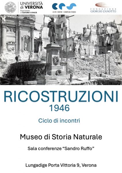 Ricostruzioni 1946 Il Center, con il Dipartimento di Culture e Civiltà dell’Università e la Fondazione Giorgio Zanotto organizza il ciclo di lezioni “Ricostruzioni | 1946”, con gli interventi di cinque storiche e storici. Tutti gli appuntamenti si terranno presso il Museo di Storia Naturale di Verona. Con il patrocinio del…